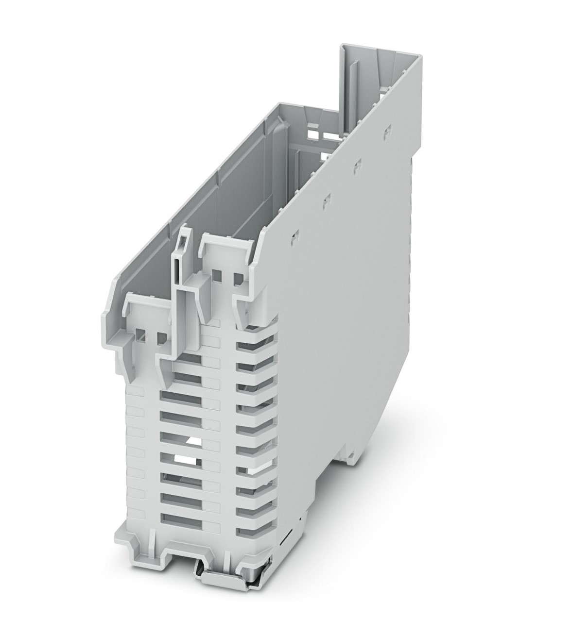 Key features of the Din Rail Enclosures 1103436 include its standard DIN rail compatibility, ensuring easy integration into existing control cabinets and panels. The durable polyamide material provides excellent mechanical strength and resistance to environmental factors. This mounting base is designed to securely hold your equipment, preventing movement and ensuring reliable operation.