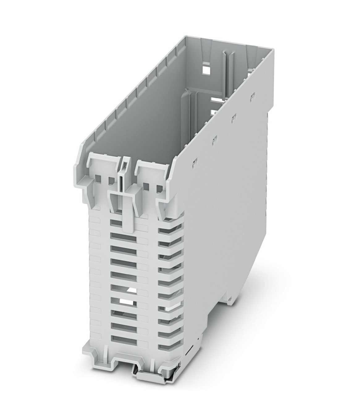 Key features of the Din Rail Enclosures 1103438 include its standard DIN rail compatibility, ensuring easy integration into existing control cabinets and panels. The durable polyamide material provides excellent mechanical strength and resistance to environmental factors. This mounting base is designed to securely hold your equipment, preventing movement and ensuring reliable operation.