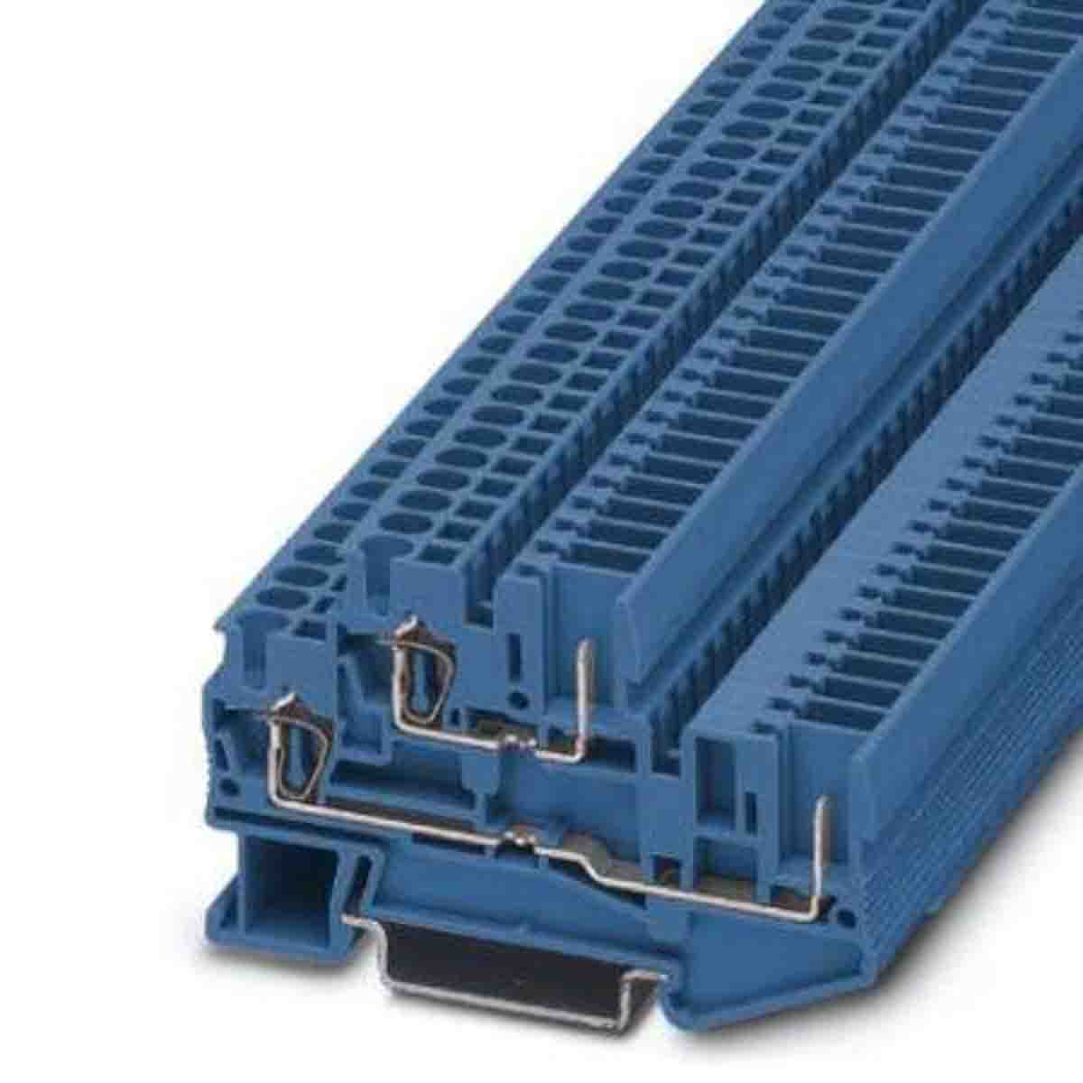 Din Rail Terminal Blocks 3040672 STTB Series Blue is a high-quality component designed for efficient and reliable electrical connections on standard DIN rails. This blue terminal block is essential for creating organized and safe wiring systems within control panels and industrial enclosures. Its robust design ensures secure wire termination, preventing loose connections and potential failures, making it a critical part of any electrical installation.