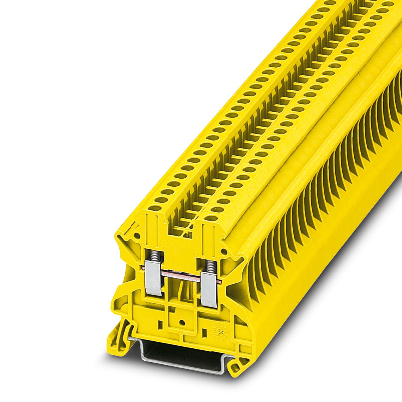 The Din Rail Terminal Blocks 3045059 is a premium single-level terminal block designed for professional electrical installations. This yellow, 5.2mm² capacity terminal block features secure screw termination, ensuring a reliable and durable connection for your wiring applications. Engineered for easy mounting onto standard DIN rails, it simplifies the process of creating organized and efficient electrical assemblies. The Din Rail Terminal Blocks 3045059 is ideal for use in control cabinets, distribution boards, and various industrial settings where dependable connectivity is crucial. Its bright yellow color enhances visibility and aids in quick identification, contributing to safer maintenance and troubleshooting. This terminal block is built to withstand demanding environments, offering consistent performance. Invest in the quality and reliability of Din Rail Terminal Blocks 3045059 for your critical electrical projects.