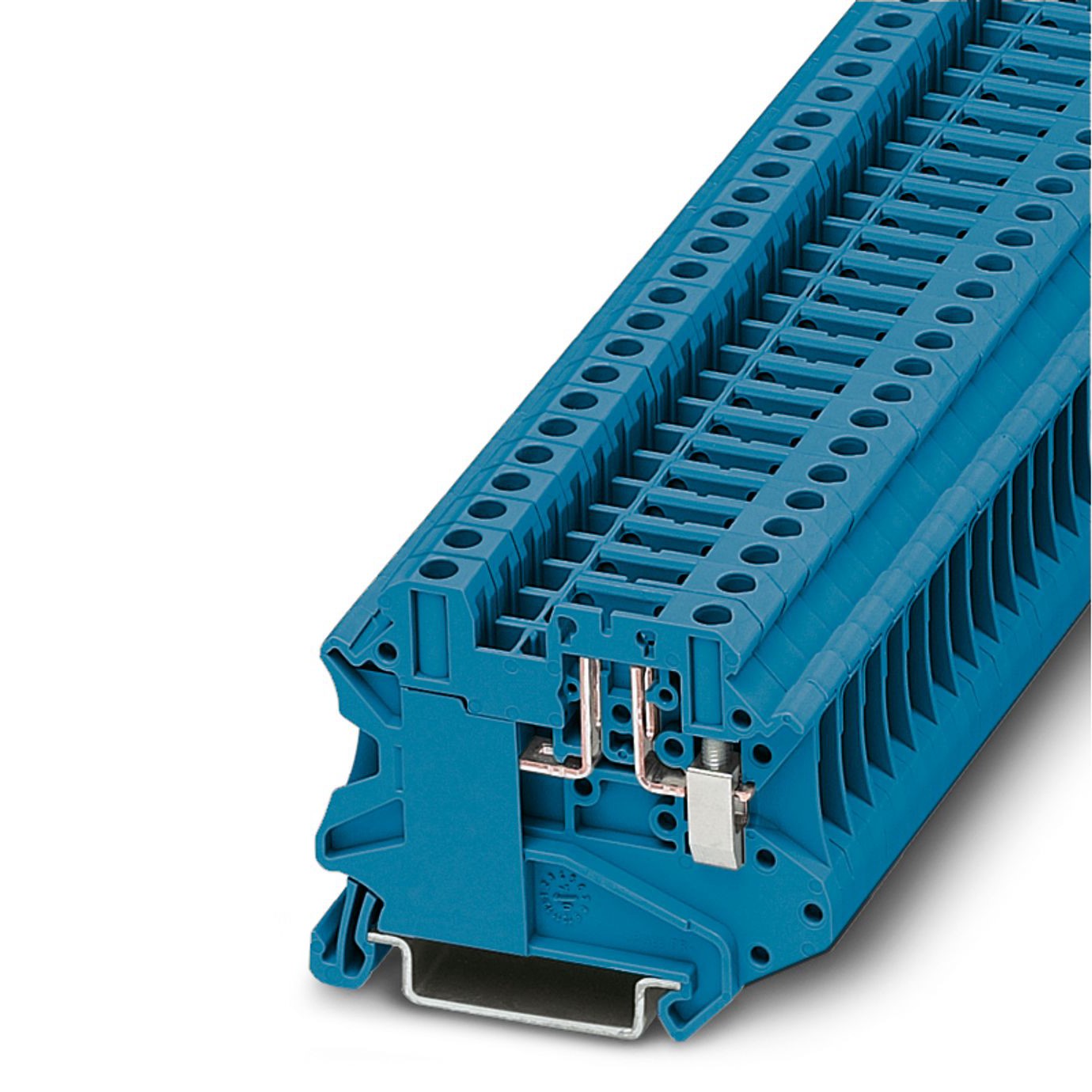 This terminal block is widely utilized in electrical control panels, power distribution systems, and automation projects where secure and organized wiring is essential. Its blue color aids in circuit identification and management, contributing to safer and more efficient electrical installations. The Din Rail Terminal Blocks 3073283 offers a straightforward and effective solution for terminating wires.
